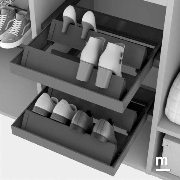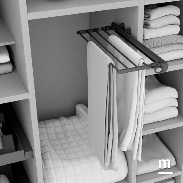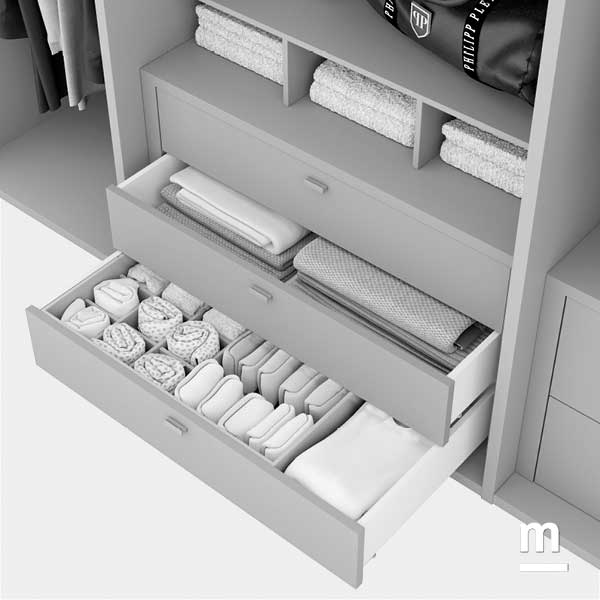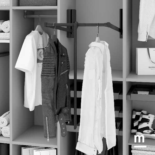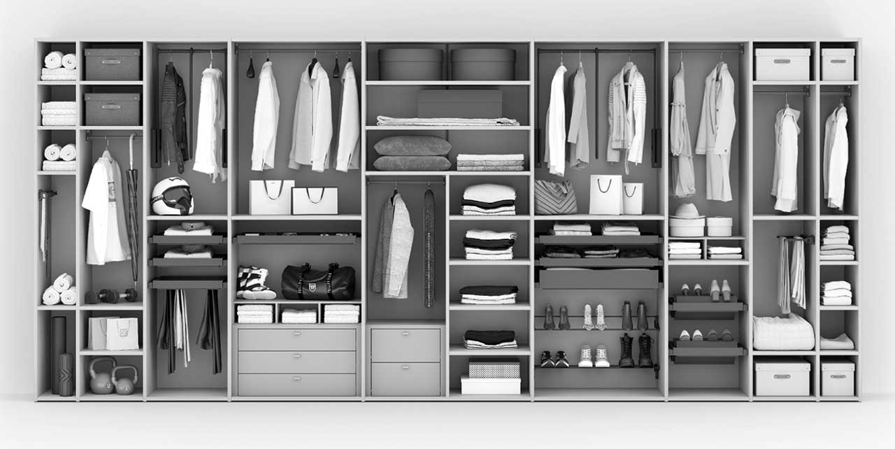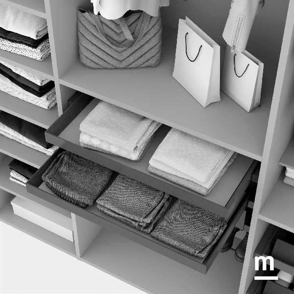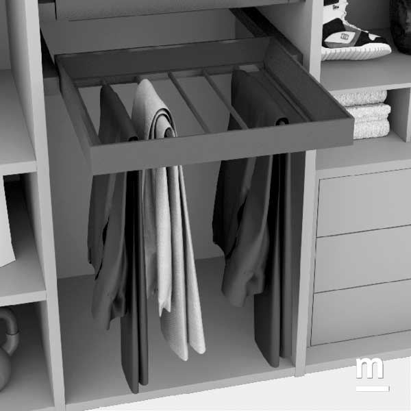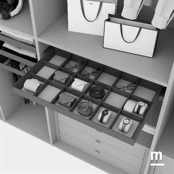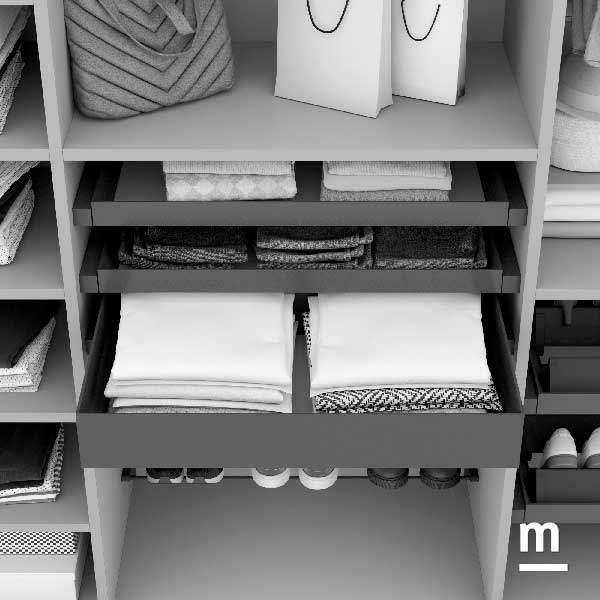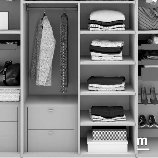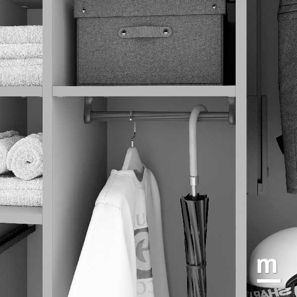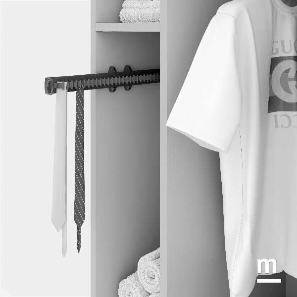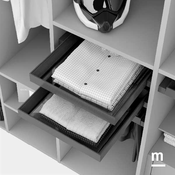 Gli armadi sono completamente attrezzabili con un’ampia gamma di accessori: ripiani, cassettiere interne, tubi appendiabiti, vani estraibili, portapantaloni, illuminazione LED integrata e molto altro. Ogni elemento è studiato per rendere lo spazio più funzionale, ordinato e facile da vivere.