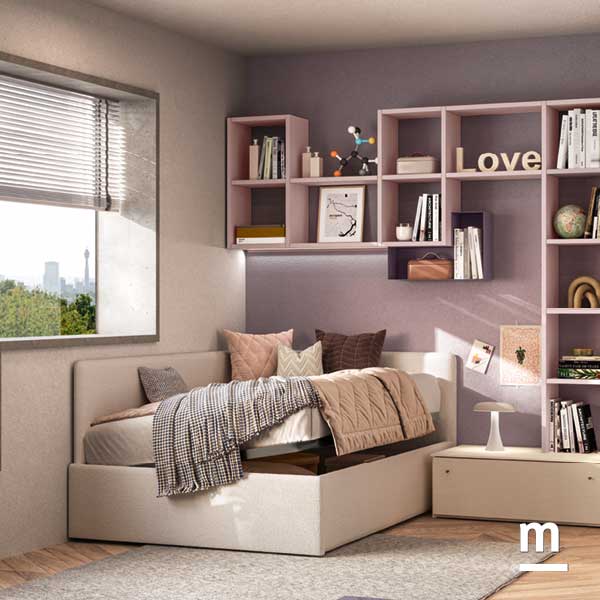 Ogni ragazzo ha dentro di sé un mondo in continua trasformazione. Spesso, basta una parete — ben progettata — per trasformarlo in qualcosa di visibile, abitabile, autentico. In questa proposta firmata Moretti Compact, l’universo prende forma a partire da una libreria Outline che si arrampica sulla parete come un’idea in evoluzione. Il disegno geometrico è reso più morbido dal laccato peonia, tonalità vivace ma gentile, che dà voce alla creatività senza sovrastarla. Non è solo contenitore, ma struttura narrativa: accoglie oggetti quotidiani e decorazioni, mescolando ordine e spontaneità.